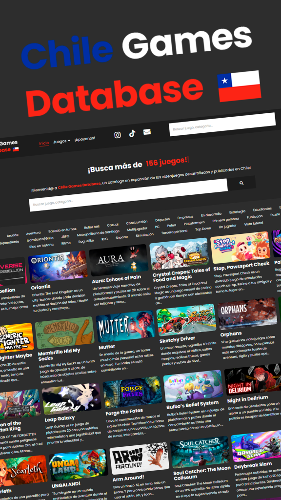 The idea was born because Chilean game developers, students, and enthusiasts did not have access to an intuitive, comprehensive, and accessible information platform about games produced and published in Chile.